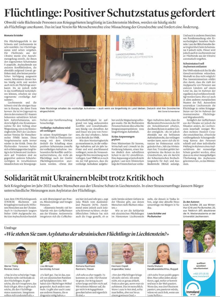 Liechtenstein und die Schweiz sind die einzigen Staaten in Europa, die eine vorläufige Aufnahme kennen. Sie ist im Gegensatz zu dem in den meisten EU-Staaten bekannten subsidiären Schutz kein Aufenthaltsstatus, sondern lediglich eine Ersatz¬massnahme für den Vollzug einer Wegweisung und wird vom UNO-Flüchtlingshilfswerk UNHCR kritisiert. Ausserdem bietet die vorläufige Aufnahme trotz längerfristigem Aufenthalt in Liechtenstein schlechte Integrationsperspektiven. Gleichzeitig wurde seit Bestehen noch keine vorläufige Aufnahme wieder aufgehoben und die Wegweisung vollzogen.