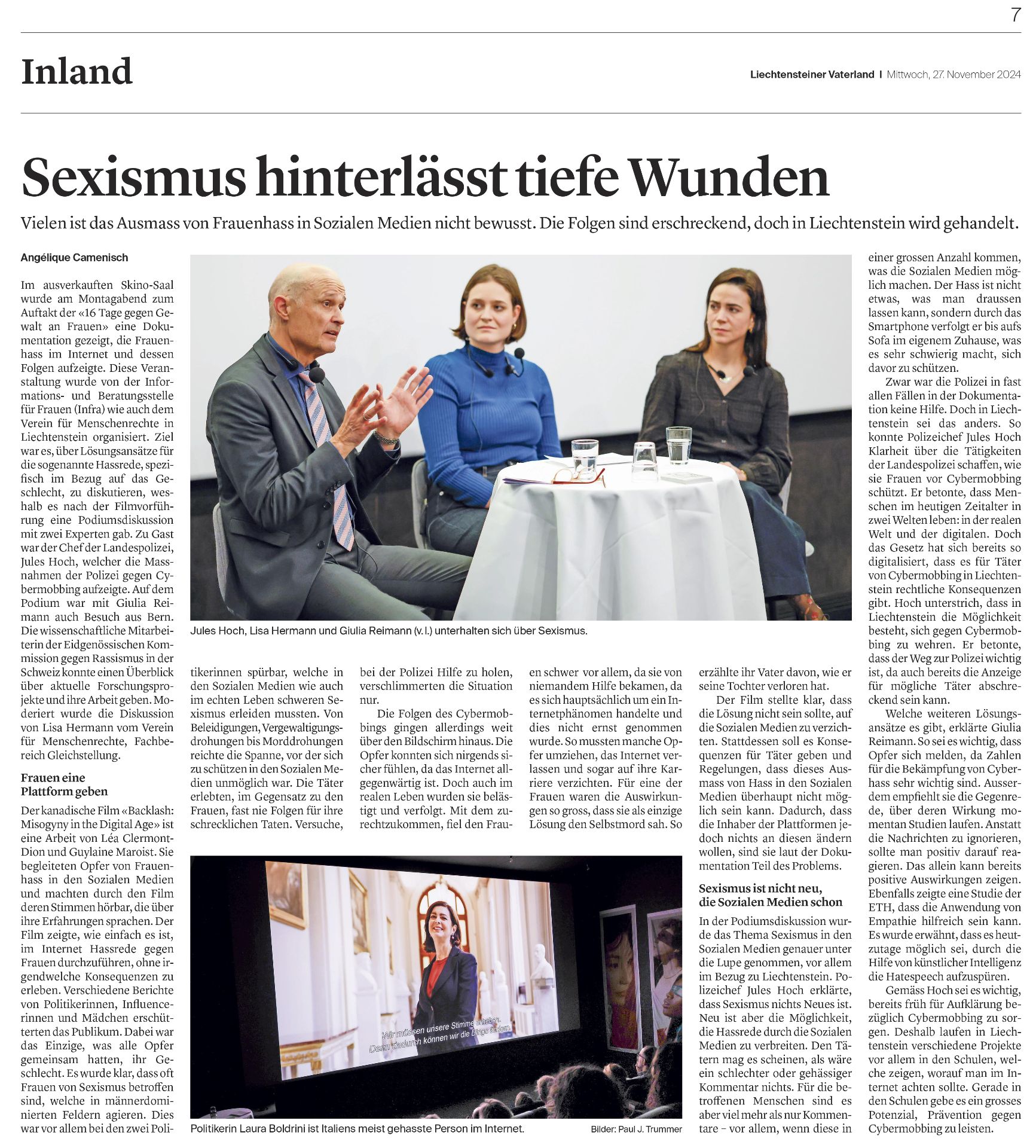 Liechtenstein ratifizierte 2021 die Istanbul-Konvention gegen Gewalt gegen Frauen und häusliche Gewalt des Europarats. Am 31. Mai des Berichtjahres erfolgten erstmals Empfehlungen der Expertenkommission (GREVIO) an Liechtenstein, über deren Umsetzung die Regierung bis spätestens Ende Mai 2027 berichtet werden muss.