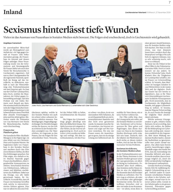 Im Berichtsjahr betreute das Frauenhaus Liechtenstein 19 (Vorjahr: 17) Frauen und 23 (15) Kinder stationär wegen häuslicher Gewalt. Die Anzahl der Belegtage stieg deutlich an. Zusätzlich fanden 72 telefonische Beratungen statt. Die ambulante Beratungsstelle, die seit November 2024 zu den Öffnungszeiten voll besetzt ist, begleitete 27 Klientinnen kurz-, mittel- oder langfristig. Die Informations- und Beratungsstelle für Frauen (infra) verzeichnete 10 Kontaktnahmen aufgrund von Gewalt an Frauen, darunter körperliche, sexuelle, psychische oder wirtschaftliche Gewalt.